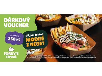 Dárkový poukaz, který lze uplatit na kterékoliv pobočce Forky´s v České Republice.Platnost poukazu do 31/12/2027. Jedná se o tištěný poukaz, který zasíláme dopravní společností.